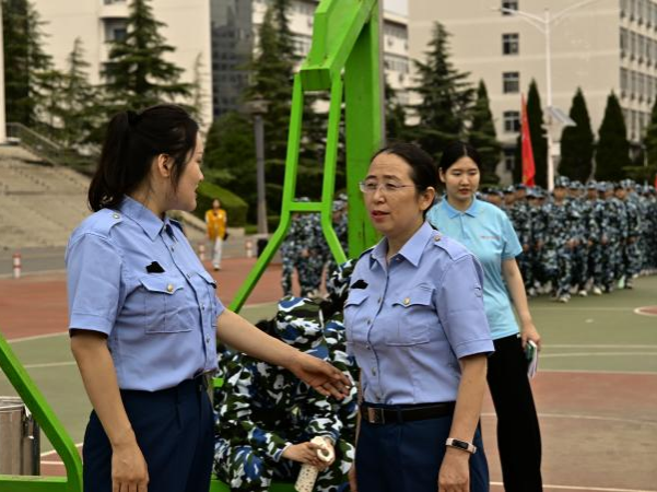 上午,学部党委书记张崇杰、副书记曾秋菊来到训练场视察军训工作开展情况。他们沿训练方阵缓缓而行,仔细察看新生训练状态,对助教们的付出表示肯定,并叮嘱相关负责人务必关注学生身体状况,强化服务保障,确保军训全程安全有序、科学高效。