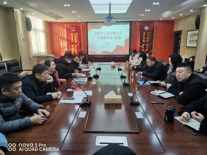 2025年1月17日,工学部在智信楼201会议室召开党政学工办及全体辅导员工作会,传达学校双代会、学校中层干部会议及工学部中层干部扩大会议的精神,进行寒假工作再部署。工学部分党委副书记曾秋菊,党政学工办主任助理万建臣,全体党政学工办人员和全体辅导员老师参加会议。会议由曾秋菊主持。